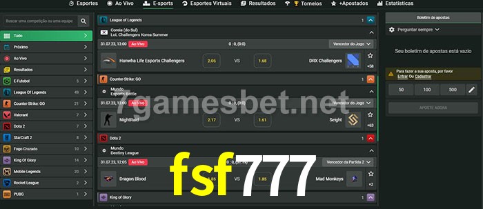 O fsf777 oferece uma grande seleção de opções de apostas em e-sports com probabilidades competitivas